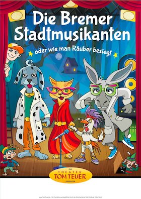 Esel Emil ist auf der Flucht. Die viel zu schweren Mehlsäcke hat er abgeworfen und sich schnell seine Mandoline geschnappt. Gerade rechtzeitig, denn der Müller hatte den Metzger schon bestellt. Und Emil ist nicht der einzige Ausreißer: Harald Hahn, Hund Kuno und Katze Karla wollen ihren Hof ebenfalls verlassen. Doch wohin sollen sie stattdessen gehen? Esel Emil weiß Rat: In Bremen werden doch Stadtmusikanten gesucht! Wieso sollte man nicht eine Musikkarriere ins Auge fassen? Sie beginnen mit den Proben. Doch der Hund will sich nicht von einem Esel dirigieren lassen. Der Hahn will nur als Solist auftreten. Die Katze beschwert sich, dass der Gesang nicht geschmeidig ist. Der Esel lässt missmutig die langen Ohren hängen … Endlich entsteht ein unschlagbares „Notorchester“, dem tatsächlich tierisch gute Musik gelingt. Motiviert macht sich die neue Band auf den Weg nach Bremen und durchquert dabei auch einen dunklen Wald, in dem ein kleines Haus aufleuchtet. Doch dabei handelt es sich leider um keine gemütliche Herberge – es ist die Hütte der wilden Räuber! Die Stadtmusikanten hecken einen Plan aus, wie sie die bösen Buben vertreiben können. Die Märchen des Theaters Mimikri predigen keine Moral, sondern veranschaulichen sie anhand von fantasievollen Handlungsverläufen. Künstlerische Mittel laden die Kinder spielerisch ein, Zusammenhänge des Lebens zu erkennen und zu verstehen. Mit großem Vergnügen werden die Themen der alten Märchen nicht einfach nacherzählt, sondern in zeitrelevante Zusammenhänge gebracht. So sind die Grimm’schen Tiere hier nicht aufgrund ihres Alters bedroht, sondern weil sie unangepasst und selbstbestimmt leben wollen. Gemeinsam bilden die ganz unterschiedlichen Charaktere eine Notgemeinschaft und finden auf ihrer Reise den Weg zu sich selbst. Dabei entdecken sie, dass es in jeder Gefahrensituation auch einen Ausweg gibt, den man durch Zusammenarbeit und eine Portion Mut am besten findet! Das Theater Mimikri, 2009 mit dem INTHEGAPreis für künstlerisch wertvolles Kindertheater im deutschsprachigen Raum ausgezeichnet, zeigt das Abenteuer der vier tierischen Ausreißer mit viel Spannung, einfühlsamer Komik und viel Musik. Durch Schauspiel und Maskenspiel, farbenprächtiger Kostümkunst und einem stimmungsvollen Bühnenbild wird das bekannte Märchen zu einem wahren Augen- und Ohrenschmaus. Räubergesang inklusive!