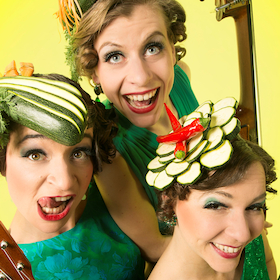 Mit der Eleganz vergangener Tage und dem Selbstbewusstsein von heute greifen die kokett frisierten Fräuleinz aus der Swing-Metropole Münster beherzt in die Saiten und begleiten ihren herausragenden Close-Hamony-Satzgesang kurzerhand einfach selbst: Während Jule Balandat souverän den Kontrabass beackert, liefert Tina La Werzinger den schmissigen Part dieser dualen Rhythmusgruppe an der Schlaggitarre und Ukulele. Die besonders schwungvolle Bereicherung ist Schnittchen Schnittker, die virtuos an der Trompete mit einfällt und nach Lust und Laune auch mal zu anderem ‚Klimbim‘ wie Klarinette, Posaune, Flügelhorn und Akkordeon greift. Die lockeren Mundwerke der drei kessen Mädelz schaffen es gekonnt, einen grünen Faden durch das bunte musikalische Treiben zu spannen.