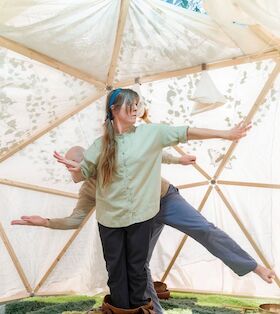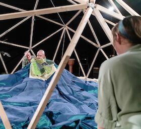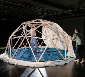 Die Reise beginnt: Es brummt das Universum, es wogt das Meer durch Wind und Wellen, Ebbe und Flut. Eine Insel erhebt sich aus dem Wasser. Vor einem Kuppelzelt hat sich Publikum eingefunden. Gemeinsam treten wir ein in das Herz des Waldes. Wir hören die Pflanzen wachsen und die Zapfen knistern. Wir erleben, wie das Eichhörnchen seine Schätze sammelt und wie sich die Raupe in einen Schmetterling mit zartem Flügelschlag verwandelt. Hört ihr das Meer rauschen und seht ihr die Fische um das Kuppelzelt herumschwimmen? Alle Sinne sind geschärft und erfüllt, wenn wir aus Wald und Meer zurückkehren. In diesem Stück verschmelzen Bühne und Zuschauerraum zu einem gemeinsamen Erlebnis- und Erfahrungsort, in den sich die Kinder aktiv einbringen dürfen.