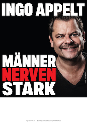 Ingo Appelt geht mit seinem neuen Programm „MÄNNER NERVEN STARK“ auf Tour, um seinen Zuschauern mit dem verbalen Vorschlaghammer zweieinhalb Stunden lang den Alltag auszutreiben.