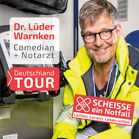 Besuchen Sie das unterhaltsamste Notfalltraining, das sie je erlebt haben. Dr. Lüder Warnken, der Notarzt, dem die Patienten vertrauen, kombiniert in seiner Show „Scheiße, ein Notfall!“ auf perfekte Art praktische Tipps und medizinische Stand-up-Comedy. Eine Multimediashow mit Animationen, Comedy, Fallbeispielen – und am Schluss reanimiert die ganze Halle: am XYtag, Xy. MONAT 2025, im LOCATION STADT.