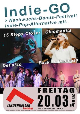 Indie-Go Nachwuchsfestival - mit: Cleomadita + DeFakto + Back To Business + 15 Steps Closer
