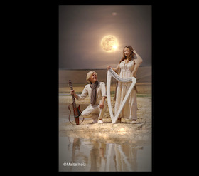 Instrumenten wie keltischer Harfe, Cello, Klavier, Gitarren und Weltmusik-Percussion. Lachen,