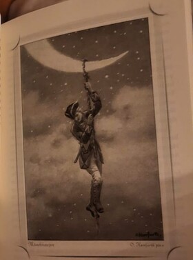 In dieser neuen Fassung der „Abenteuer des Baronen Münchhausen“ begegnen sich zwei Menschen im Grenzbereich von Erinnerung und Erfindung – der eine vielleicht ein alter Hochstapler, die andere vielleicht seine letzte Zuhörerin.