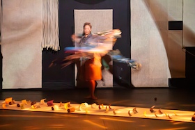 With It’s like a Finger Pointing a Way to the Moon, Brussels-based artist Moya Michael is presenting her work in Berlin for the first time. In a multi-faceted piece combining video, choreography and musical composition, she reflects on her encounters with !Amace, Be and their Ju/’Hoansi and !Kung families.