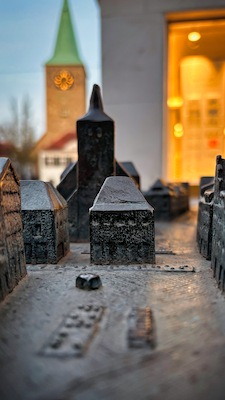 Im Rahmen des Stadtrundgang machen wir uns auf die Suche nach Spuren der Vergangenheit in einer heute „fast“ vollständig nach dem Krieg wiederaufgebauten Altstadt. Mit etwas Fantasie und oft erst auf den zweiten Blick kann man tatsächlich das rege Leben in dieser Stadt seit dem Mittelalter nachempfinden. Angefangen bei Straßennamen, Straßenverläufen, über Bodenstrukturen, Grabsteinen, Brunnen, Bürgerhäusern und Klöstern, stößt man unweigerlich auf Reste von mittelalterlichen Stadtmauern, Toren und Türmen und kann sogar Reste einer riesigen Sternfestung des Dreißigjährigen Krieges nachspüren.