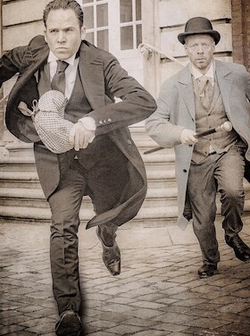 Wenn die Schauspieler Roland Kalweit und Danny Richter die spannendsten Fälle des Meisterdetektivs wieder auferstehen lassen, tun sie das folgerichtig als Dr. Watson und Sherlock Holmes. Zeitgenössisch gekleidet, entsteht so ein stimmiger Abend voll Spannung und detektivischem Spürsinn, der die beiden auch durchaus in der einen oder anderen Situation ins Publikum führt – warum auch nicht, so lange es der Verbrechensbekämpfung dient!?