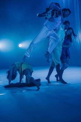 Based on the short film Pfauenschrei (Peacock Cry), the piece wanders along the states experienced by coma patients: mental worlds transform into choreographic worlds of movement, and the ambivalence of silence in motion also touches overarching questions of power and literal powerlessness in the face of the crises and overwhelming circumstances in which we currently find ourselves. Supported by Berk Offset's composition, Alberto Scodro's stage design, Dagmar Gruber's costume design (Dama Studio), and dramaturgy by Susanne Foellmer, Veronika Riz succeeds in unfolding a journey through fantastic worlds that reveals the feeling of flying or being pursued, creature-like figures that take possession of the body, and threatening grimaces.