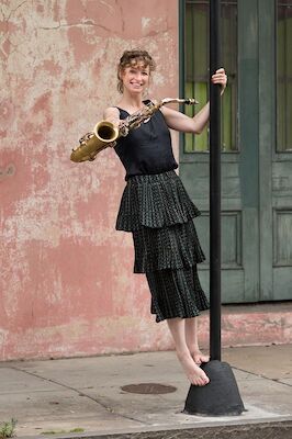 Auf seiner Tuba. Er lotet schnelle rhythmische Folgen ebenso aus wie getragene Klänge, die bisher die wenigsten von einer Tuba gehört haben. Ebenso einfallsreich geht Nicole Johänntgen mit ihrem Saxo-