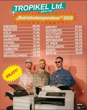 Mit der „Hotel Tiavo Tour 2026“ bringen die Jungs dieses ganze chaos-taugliche Sounduniversum live auf die Bühne – wenn Sie also keine Lust haben auf eine Darbietung irgendwo zwischen Musik, Theater und Spaß, Sie gegenüber neuen Erfahrungen lieber verschlossen bleiben und Sie die Langeweile dem Abenteuer vorziehen, dann bleiben Sie diesen Veranstaltungen am besten fern.
