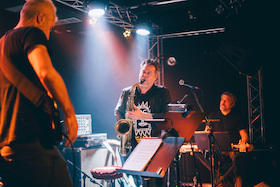des Weltraums? Wer steckt dahinter? Der Spanier Armando Carillo Zanuy kann auf der Trompete alles und lässt sich als erfahrender Bigband-Leader durch nichts aus der Ruhe bringen. Kota Maeda kommt aus Japan – und vom Blues. Bei den Proben eher still, auf der Bühne ein Gitarren-Derwisch. Peter Herzau hört zu, legt mit seinem Fender Rhodes Klangteppiche und entwickelt seine dekonstruktiven Soli nach den Prinzipien der Gestaltpsychologie. Francisco P. Riccheri aus Argentinien ist der junge Wilde und trommelt mit so viel