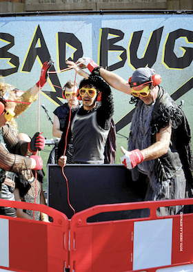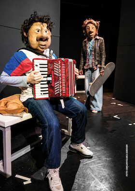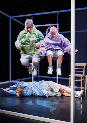 Wild und weich, kugelrund und kantig, flirrend und flüssig, fest und flatternd, schwer und schwebend – drei Performerinnen spielen mit Objekten und Körpern, tanzen und trommeln, stampfen und springen, klopfen und klingen. Die schwerhörige Performerin Geli Strahl, die Tänzerin Moonjoo Kim und die Schlagzeugerin Rie Watanabe erkunden Rhythmen, Vibrationen und Schwingungen, die durch den Körper fließen und laden das Publikum mit allen Sinnen ein – ganz ohne Sprache. Eine Entdeckungstour durch Klangwellen, Körperwellen und Wow-Momente für ein taubes und hörendes Publikum – ruhig und rasant, klar und chaotisch, präzise und planlos, humorvoll, schräg, verspielt, verrückt – BÄÄÄM!