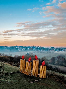 Wir wandern gemeinsam mit Wanderführerin Bianca über die Öfen hinauf ins Röthelmoos. Die kalte Winterluft prickelt im Gesicht und unter unseren Sohlen knirscht der feste Schnee.
