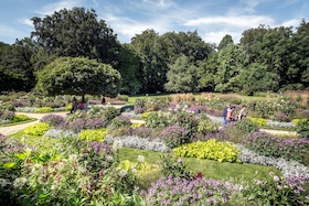 Die Riege der Parkführer*innen nehmen daher an verschiedenen Terminen im Jahr Interessierte mit auf einen lehrreichen Spaziergang durch den Park und den Botanischen Garten. Treffpunkt für die Teilnehmenden ist der Eingang zum Botanischen Garten an der Ecke Parkstraße/Badstraße. Besonders schön: Zum Herbst erkunden die Teilnehmenden die Spätblüte im Park, im Frühjahr und Sommer zaubert die Hauptblütezeit malerische Farben. Eine besondere Station sind zudem die Sommerblumenbeete rund um den Kugelahorn mit der charakteristischen weißen Rundbank im Zentrum des Botanischen Gartens. Die Stadtgärtner*innen lassen sich bei deren Planung jedes Jahr neu inspirieren, zuletzt 2020 von den 1970er Jahren. Mit farbenfrohen geometrischen Mustern ist eine nostalgisch-farbenprächtige Sommerblumenpflanzung entstanden: Eine wahre Hommage an 111 Jahre Stadtpark.
