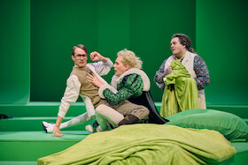 Man glaubt es nicht, ehe man es nicht selbst gesehen hat: Drei männliche Darsteller schaffen es, an einem Abend mit Hilfe von dutzenden Kostümen, Comedy, Slapstick, Persiflage und fliegenden Kostümwechseln Shakespeares sämtliche Werke in nur zwei Stunden auf die Bühne zu bringen. Eine unglaubliche Leistung, hat doch der große britische Autor vor über 400 Jahren 37 abendfüllende Theaterstücke mit 1.834 Rollen und 154 Sonette verfasst. Da wird auf der Bühne im Handumdrehen aus Romeos Julia die geschändete Lavinia, aus Macbeth wird Hamlet, aus Ophelia wird König Claudius. Da wird gerappt und Fußball gespielt. Da entpuppt sich Hamlets wahnsinnige Geliebte Ophelia als stimmstarke Frau aus dem Volk.