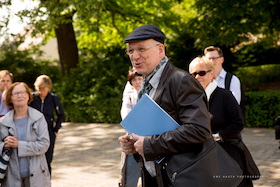 Wir laufen etwa 4 km und sind mit Lesungen ungefähr 3-4 Stunden unterwegs. Bitte nehmen Sie ein Sitzkissen mit.