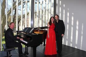 Die Musiker des Abendkonzertes erläutern das Programm, das Ensemble, die Instrumente usw.