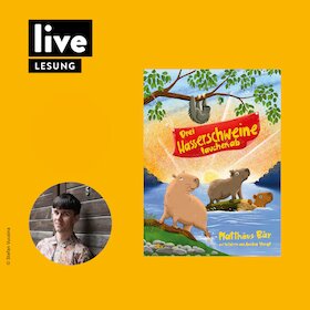 Kommt vorbei zur Lesung von Matthäus Bär von "Drei Wasserschweine tauchen ab" am 21.05.2026 in eurer Hugendubel-Buchhandlung Weimar!
